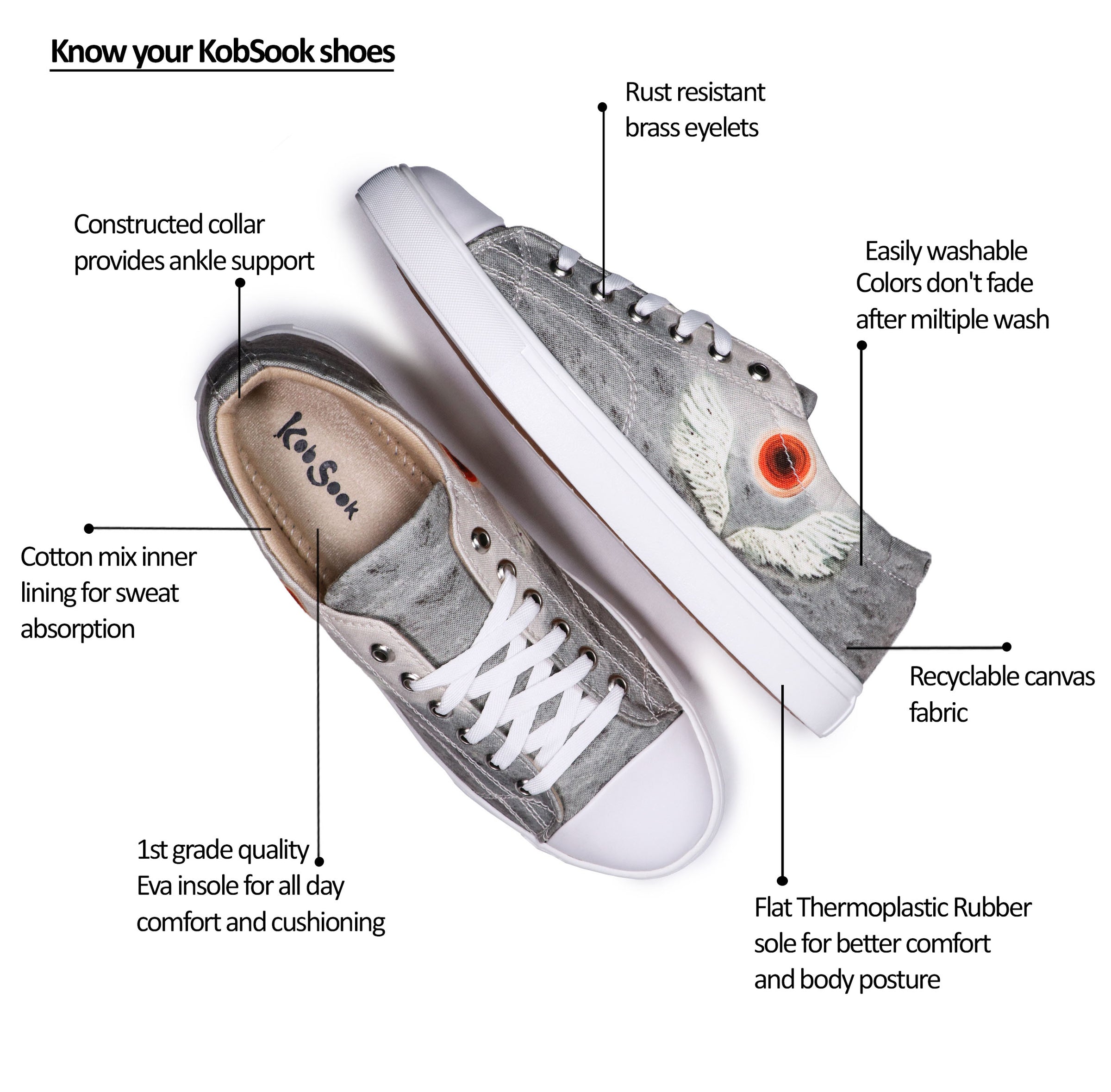 KobSook canvas shoes are highly versatile and can be styled in numerous ways. They pair well with casual outfits like jeans, cargos, linen trousers, shorts, skirts and even with traditional fits. They can also be dressed up with chinos or sundresses for a more polished look. Experiment with different colors and patterns to express your personal style.