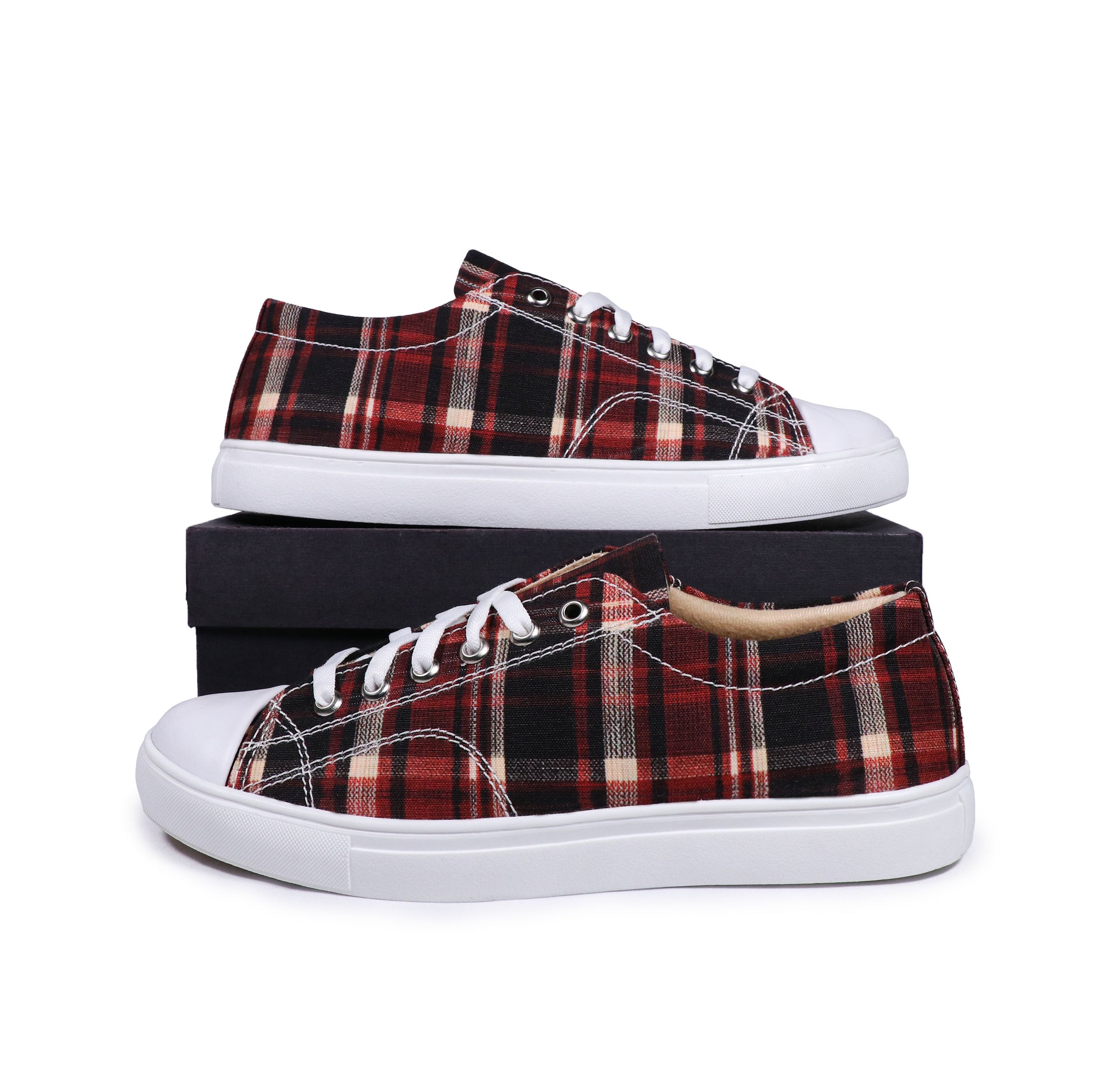 | Artist – Vishal Handa Art This digital artwork, created in Photoshop, features a bold red and blue mixed check pattern designed specifically for canvas sneakers. The vibrant contrast adds energy and personality to the design. It brings a modern, street-style edge while still feeling clean and stylish. |